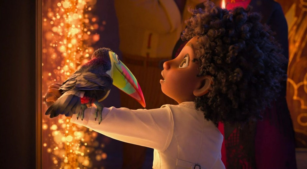 It parallels Frodo from The Lord of The Rings. Sauron was defeated, Aragorn takes his rightful place as King and there was peace. Frodo got to return to The Shire with his friends, but it was never the same. Frodo too endured great trauma on his journey to destroy the ring in Mount Doom, hence he left with Gandalf to Valinor (the Undying Lands), where he could heal.
